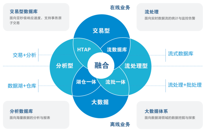 从上世纪60年代起,数据库就在影响着人类发展进程,从早期的大型机、小型机,再到今天的云边端一体化应用场景,实现了架构上的统一到分离,也就是交易型数据库与分析型的分道扬镳。而今天,历史好像在重复昨天,HTAP、湖仓一体、流批一体等趋势,让我们看到“超融合”成为主流。